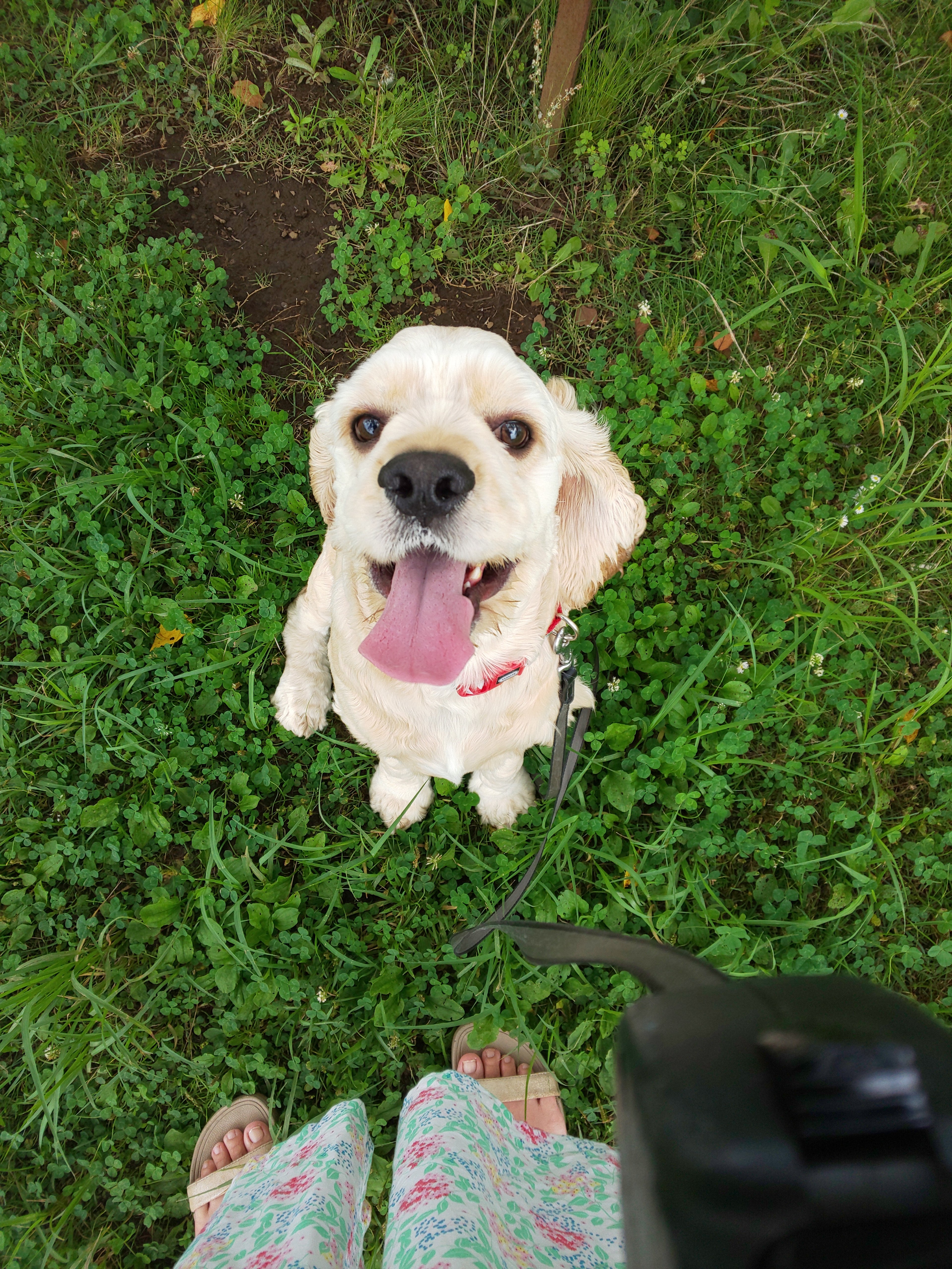 On a freezing winter morning at −6°C, we dressed him warmly and he simply refused to move. Off the outfit went. We kept his coat short and were often asked, “What kind of dog is that?” Few guessed he was a Cocker Spaniel — but Fuku didn’t mind the cold. He lived freely, proudly, and true to himself.