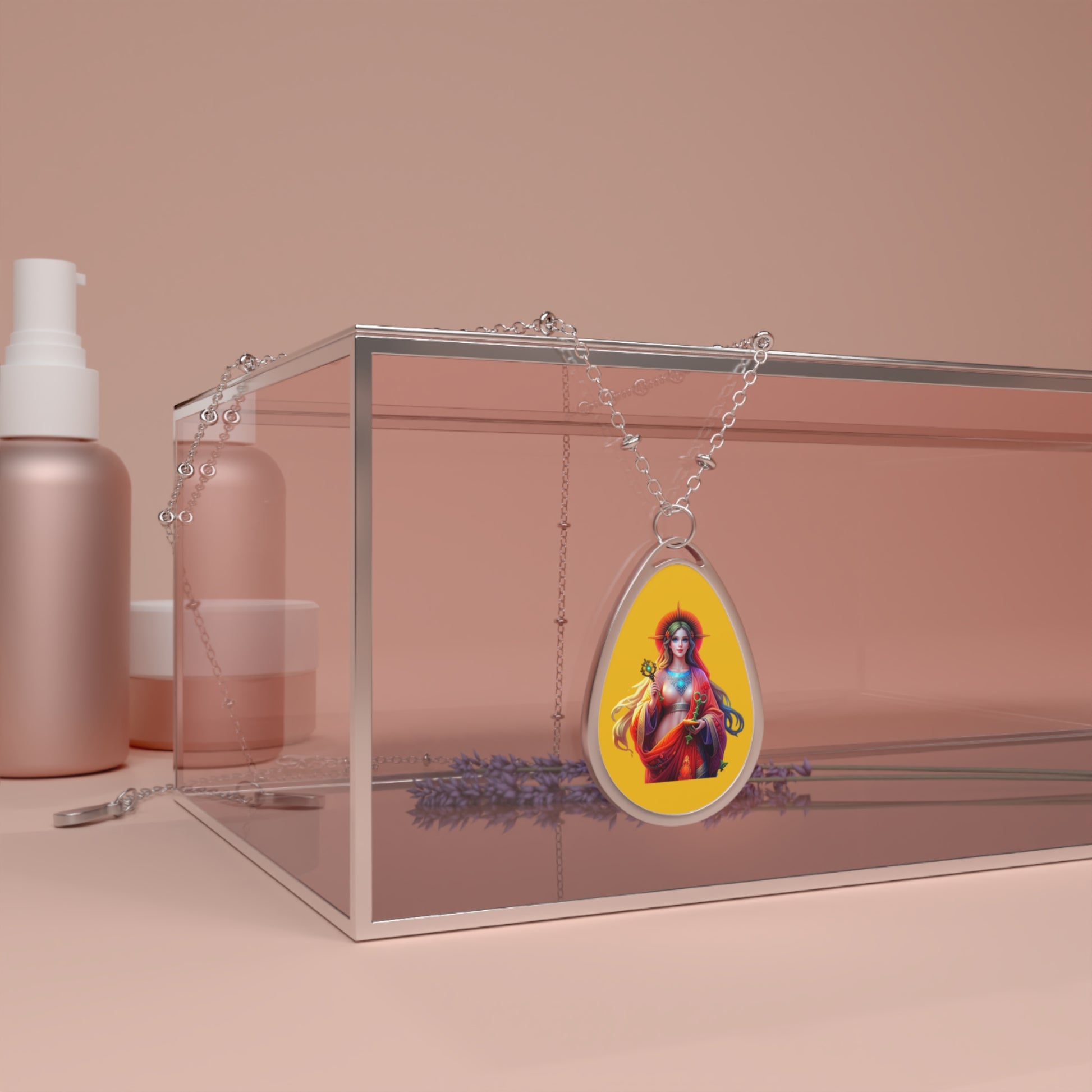 Artistic Oval Necklace with Goddess Design, Elegant Jewelry Gift, Meaningful Pendant, Bohemian Style, Unique Accessory for Women