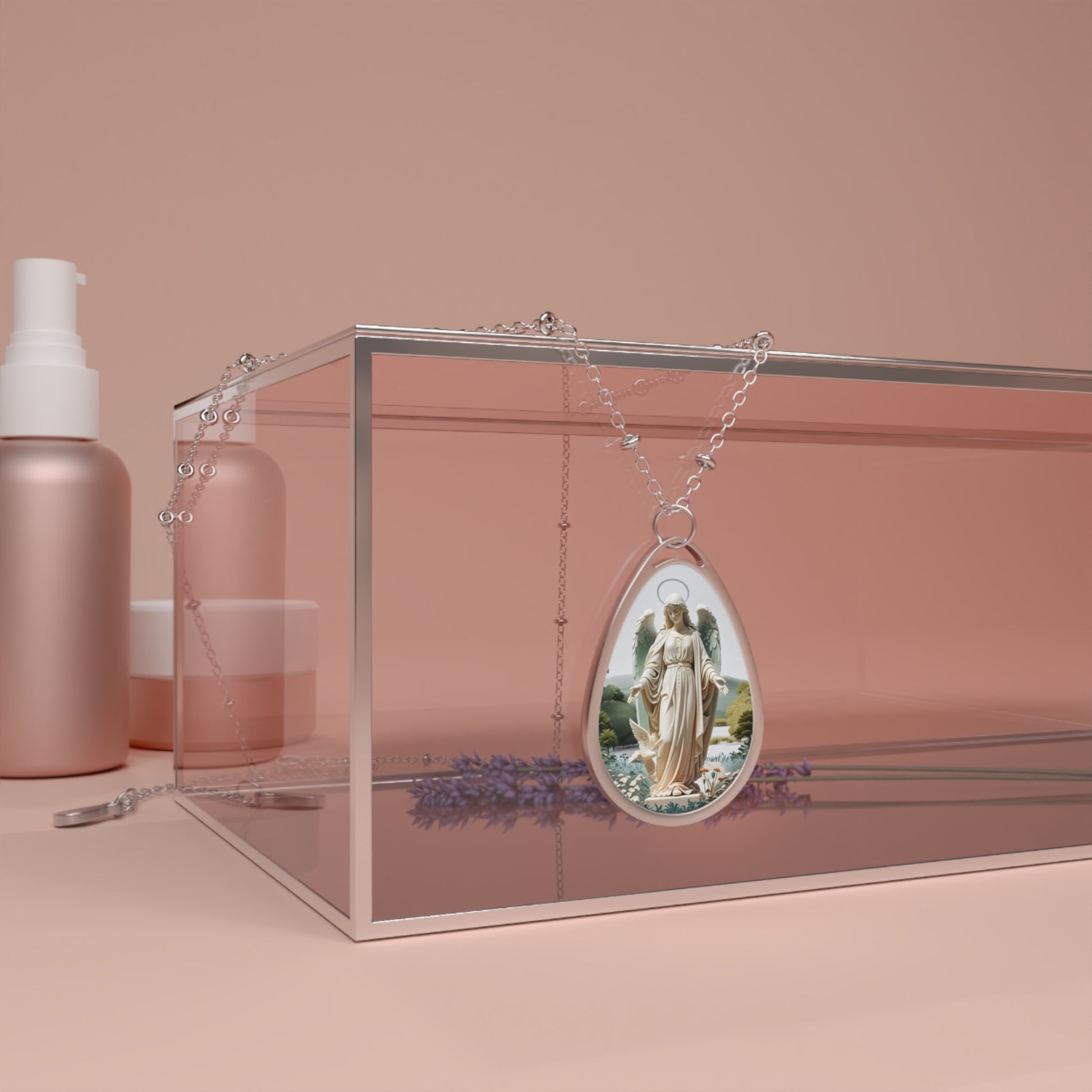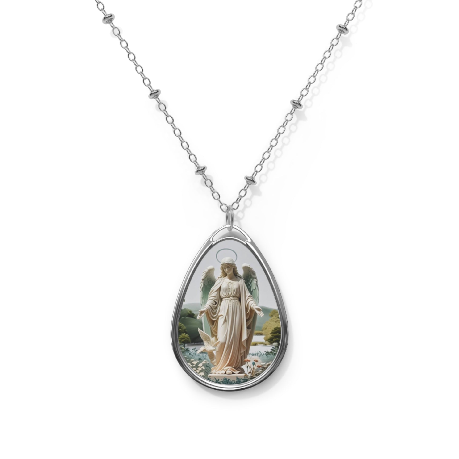 Elegant Oval Necklace with Angel Design, Meaningful Jewelry for Faith, Gifts for Her, Religious Necklaces, Mother's Day