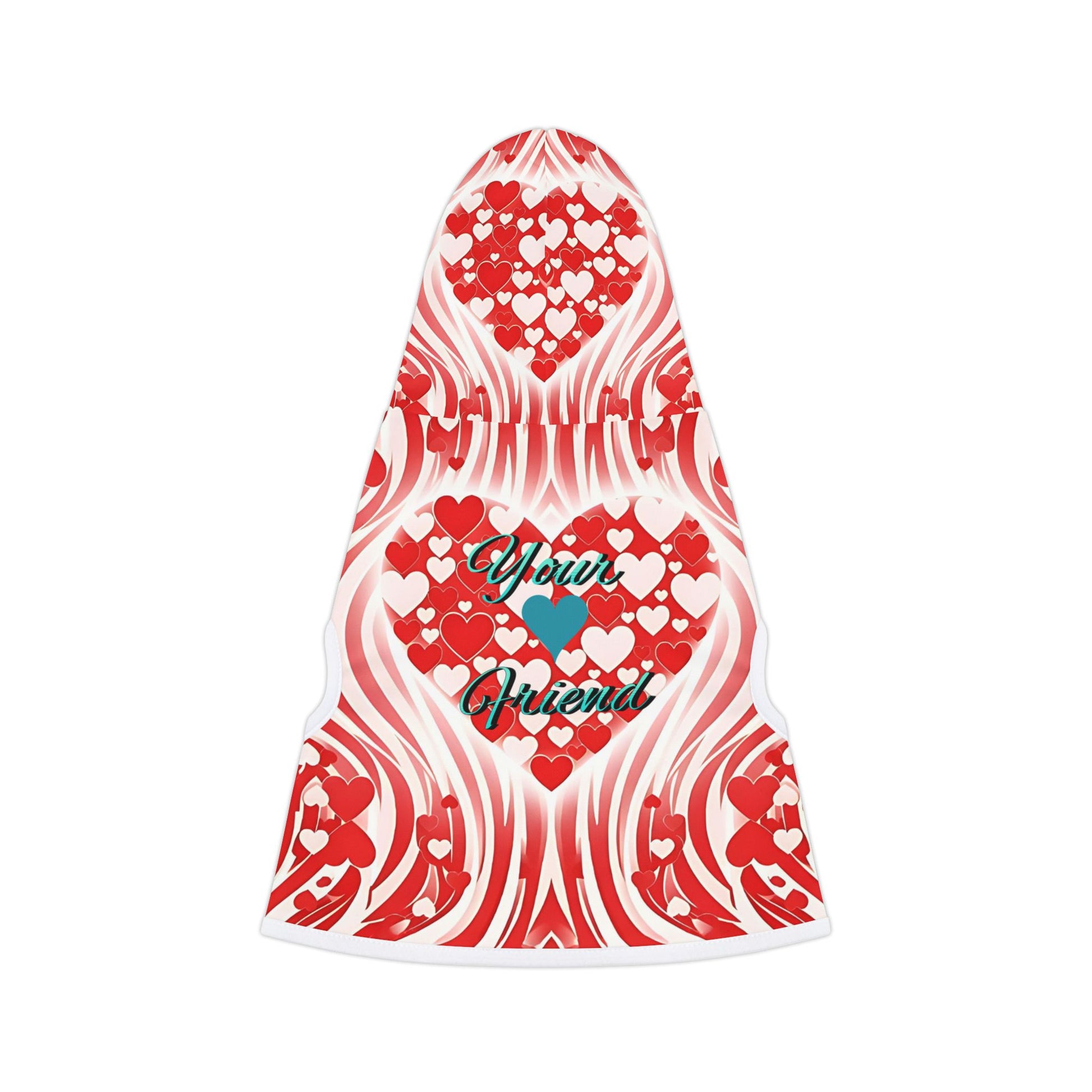 Introducing a delightful Pet Hoodie that adds a cozy touch to your furry friend's wardrobe. This vibrant hoodie features a playful red and white design adorned with hearts, perfect for showcasing your pet’s personality while offering warmth and comfort. Ideal for pet lovers looking to celebrate Valentine's Day, anniversaries, or just everyday love. This hoodie will make your pet the star of any occasion, whether at home or on a stroll in the park.