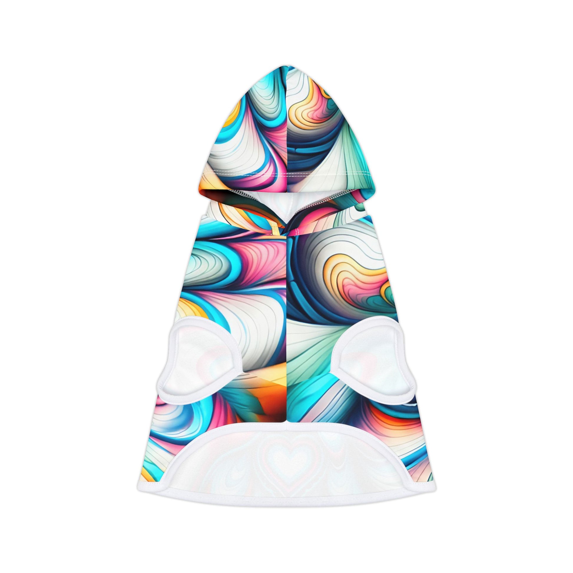 Introduce a splash of color and personality into your pet's wardrobe with this vibrant Pet Hoodie. Made from 100% soft polyester, it offers exceptional comfort and warmth, perfect for those chilly walks or cozy nights at home. The unique swirling patterns and bright hues elevate your pet's style, making them the center of attention on any occasion. Available in seven sizes, this hoodie is designed for pets of all shapes and sizes, ensuring a snug fit that your furry friend will appreciate. With a choice of rib colors, it can be personalized to match your pet's unique style. Ideal for pets who love to stand out, this hoodie is a fantastic choice for pet owners wanting to celebrate holidays, special occasions, or simply brighten up their day with their beloved companion's fashionable attire.